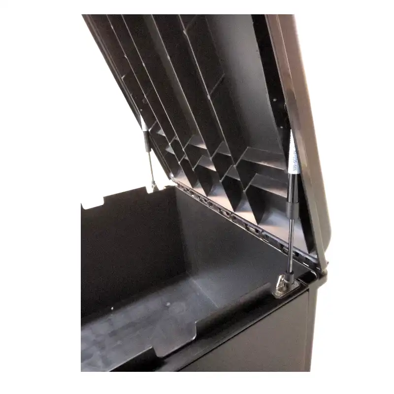 Features gas pressure springs for easy opening and closing.